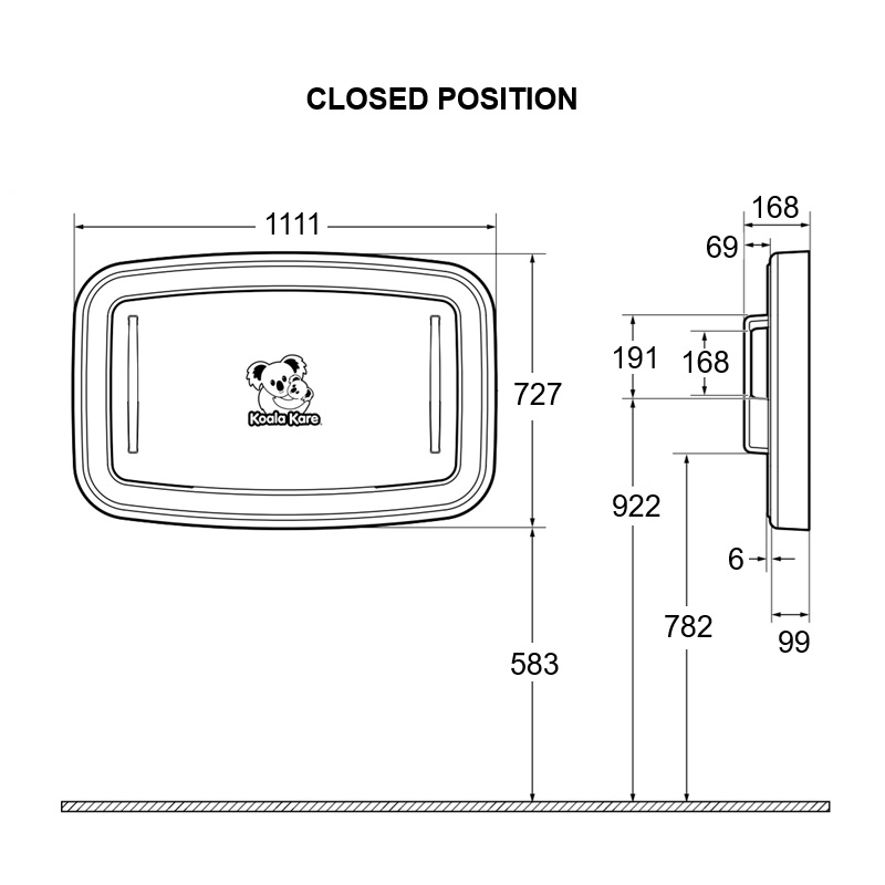 - Wall mounted horizontal baby changing station.