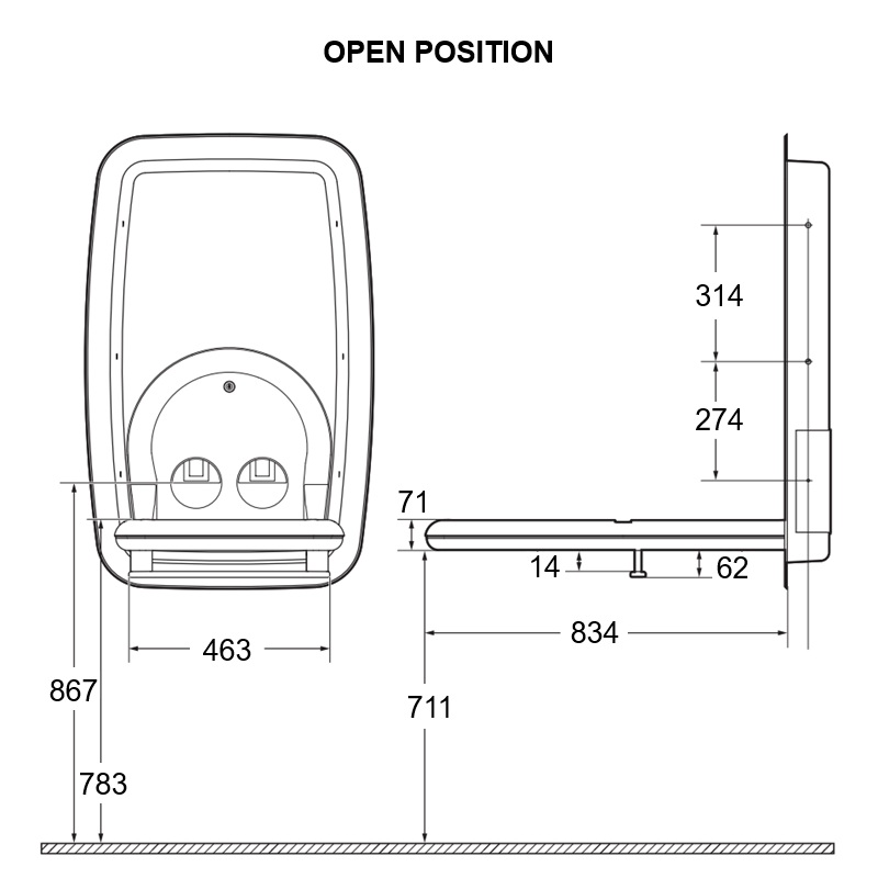 • 834mm front to back (open)