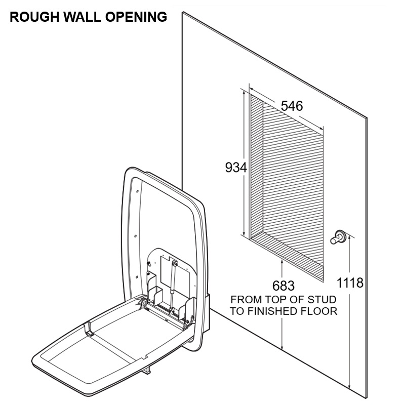 • Recessed mounted vertical baby changing station.