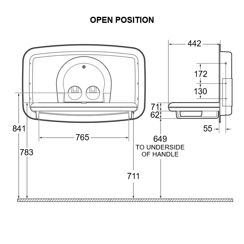- 442mm front to back (open)