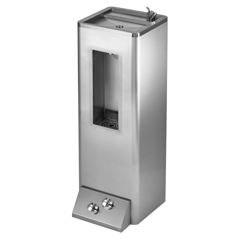- Foot operated drinking fountain with built in water bottle filling unit.