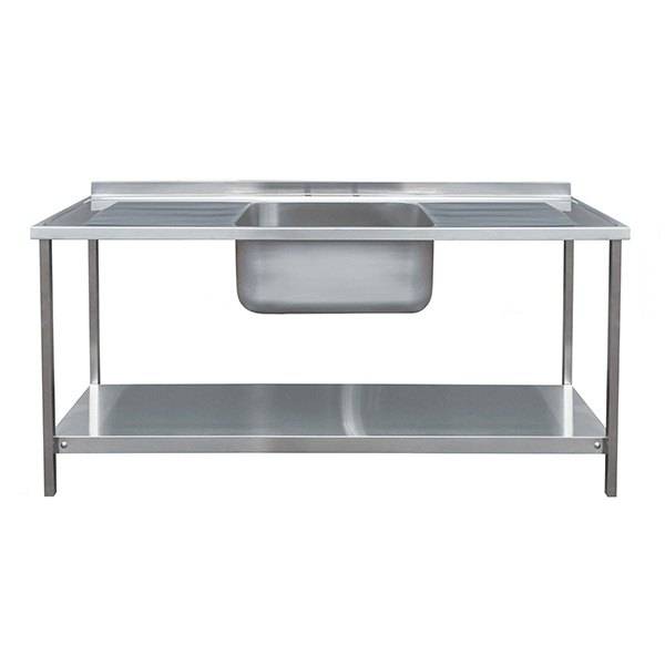 1800mm Single Bowl Double Drainer Catering Sink Top on Frame 650mm Projection