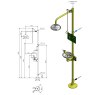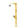 Trace heated freestanding emergency shower with combined eye wash unit.