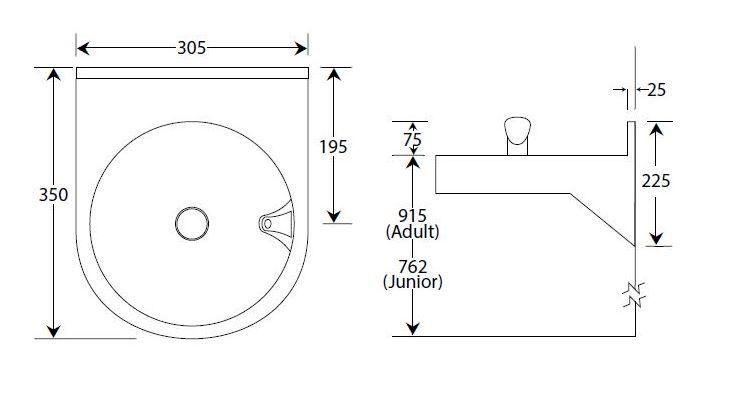 • Drinking fountain manufactured in one piece from 1.6mm thick grade 304 stainless steel for extra vandal resistance and durability.