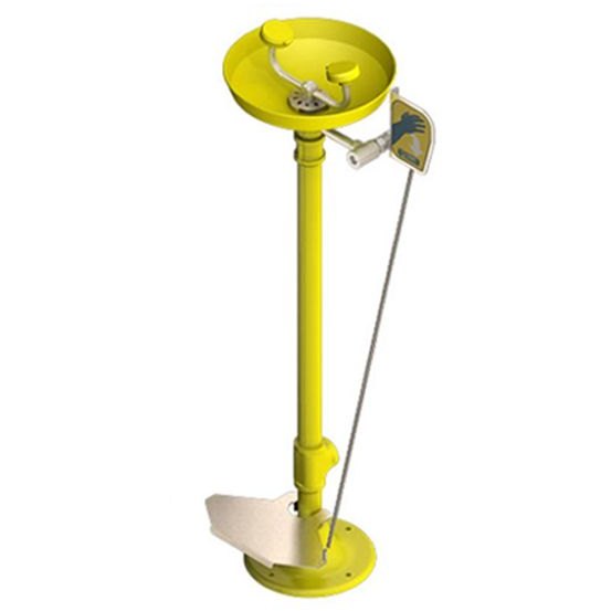 - Pedestal mounted eye and face wash with yellow plastic bowl 300mm diameter.