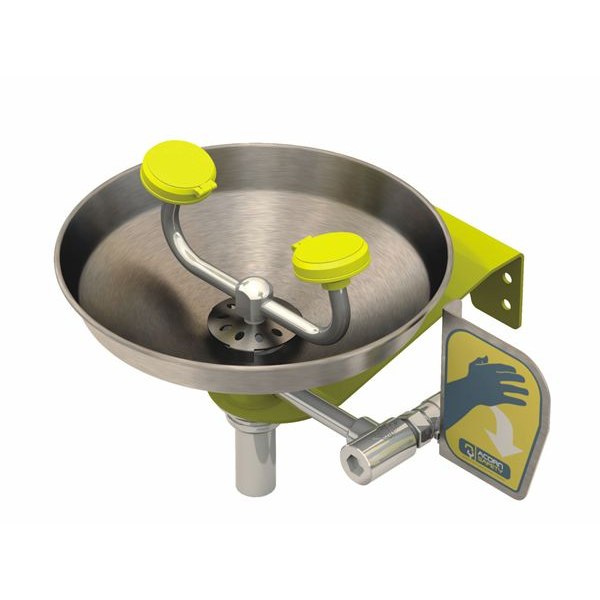 - Wall mounted eye and face wash with stainless steel bowl 300mm diameter.