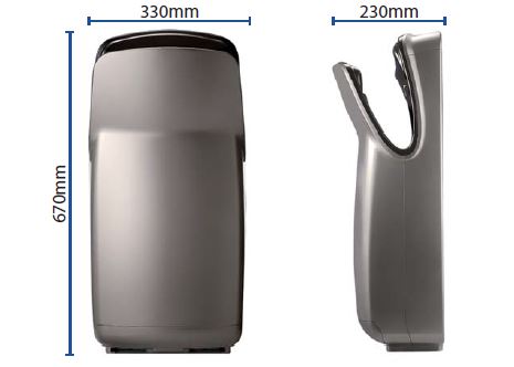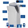 - Energy efficient utilising the heat from its own brushless motor to provide warm air to dry hands.