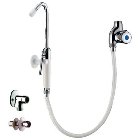 • The bed pan cleaner features a wall mounted valve with quarter turn control.