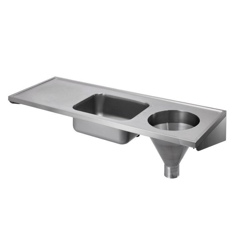 - Stainless steel wall mounted combined sluice sink (slop hopper) with sink and plain top.
