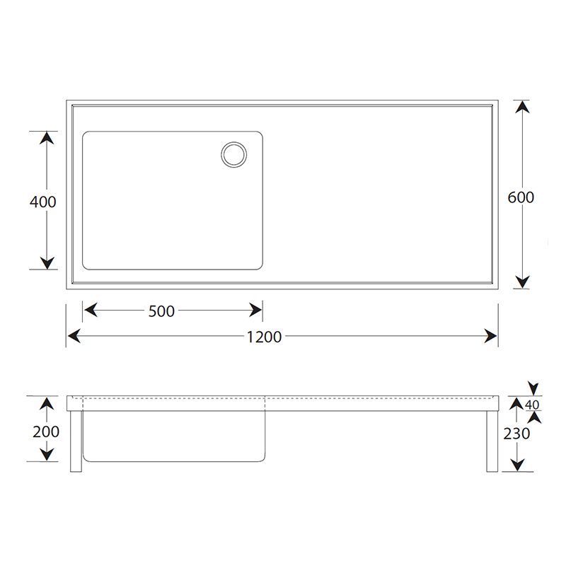 - Sink bowl 500mm x 400mm x 200mm deep.