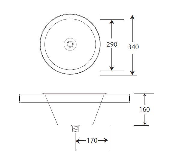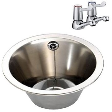- Stainless steel round 340mm diameter inset wash bowl with lever operated taps.