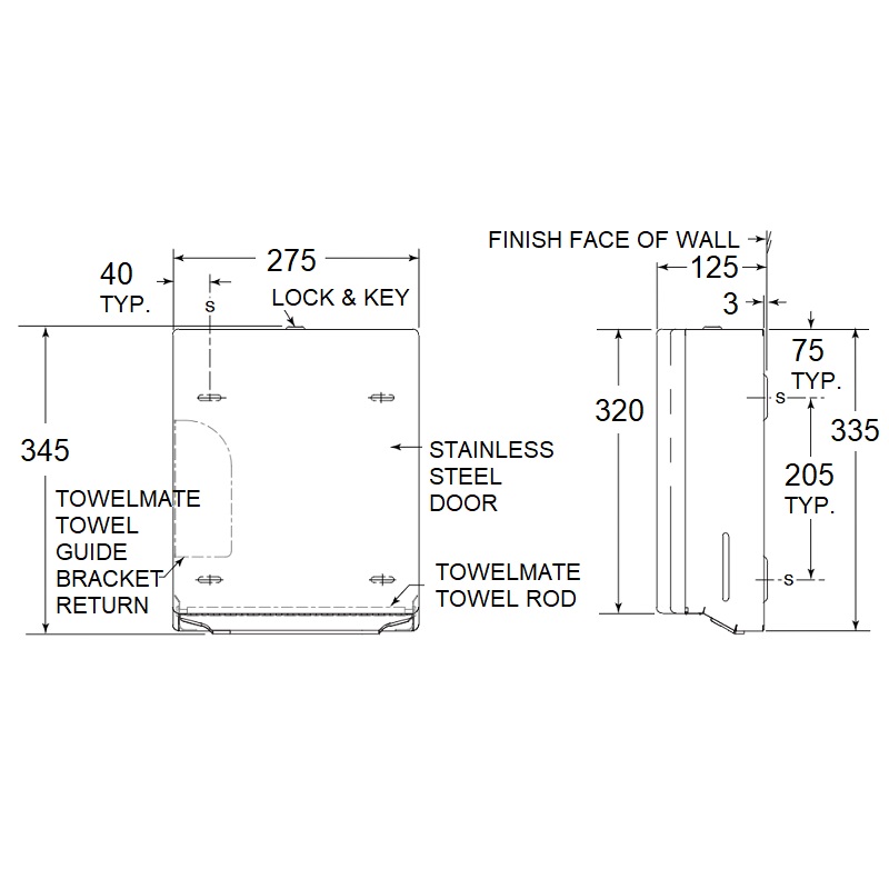 - Units are fitted with TowelMate to prevent towels from falling when the unit is opened.
