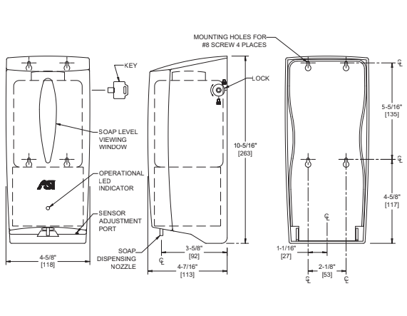 - High impact plastic vertical soap dispenser.