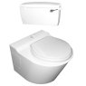 • Concealed low level plastic cistern with through wall lever, and flush pipe.