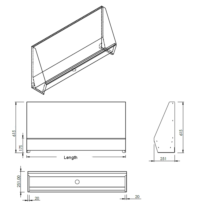 With a larger height of 615mm and a projection of 250mm the larger standard urinal is ideal for high traffic areas and for replacement of older larger sized urinals.