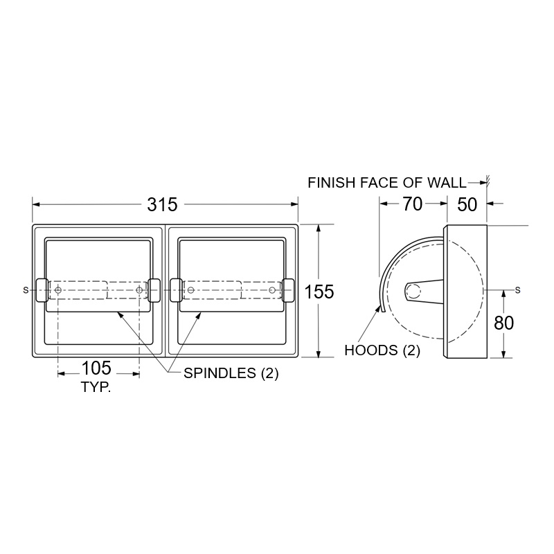 Durable and stylish double-roll toilet paper dispenser made from type 304 stainless steel with a one-piece seamless construction. The bright-polished finish adds a sleek touch, while chrome-plated spindles securely hold rolls for easy dispensing.