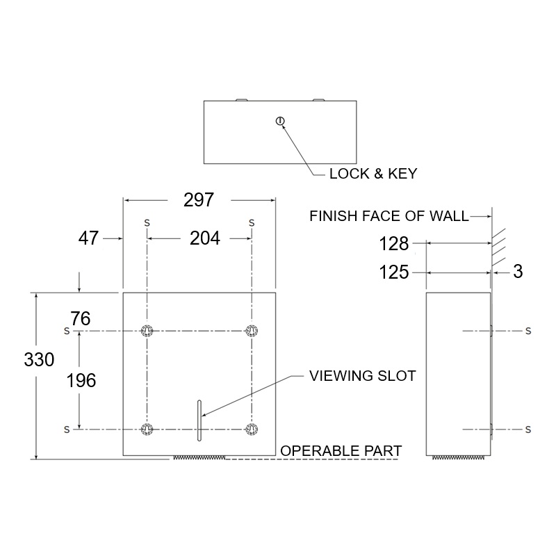 This stainless steel jumbo toilet roll holder is designed to accommodate larger rolls, minimizing refill frequency in high-traffic washrooms. Constructed from robust grade 304 stainless steel with a seamless, satin finish, it combines durability with an attractive design. The unit features a hinged lid secured with a flush-mounted lock, matching other Bobrick washroom accessories, and a viewing slot for monitoring tissue levels. Suitable for rolls up to 10" (255mm) in diameter.