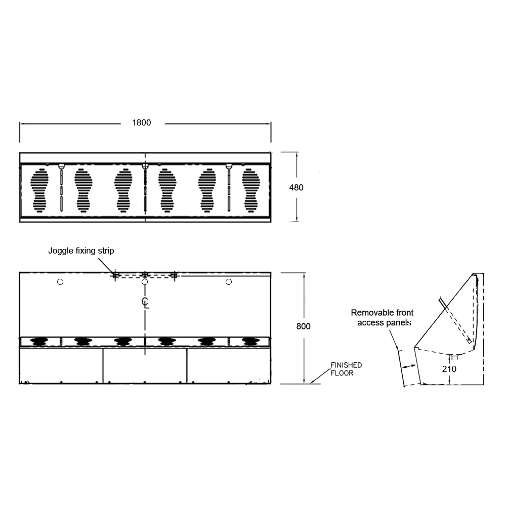- The triple 3 person Wudu foot wash trough is manufactured from grade 304 stainless steel for extra vandal resistance and durability.