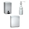 Extras include taps (vandal-resistant, sensor, knee-operated, mixer), bottle traps, trap covers, metal waste fitting, soap/paper dispensers, and front support legs.