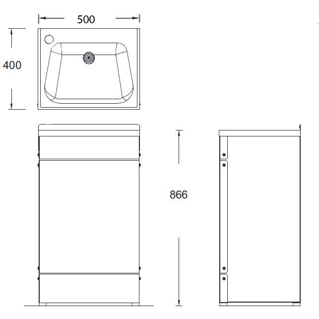 Floor standing enclosed wash basin 500 x 400 x 866mm
